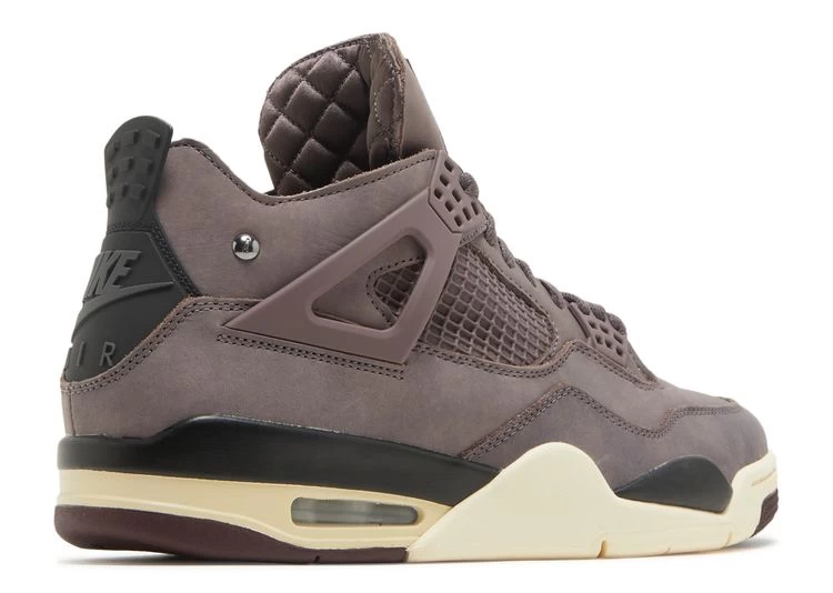 The A Ma Maniére x Air Jordan 4 Retro ‘Violet Ore’ delivers an elevated take on the legacy silhouette. The Atlanta-based retailer dresses the mid-top in a muted purple nubuck upper, accented with tonal quarter panel netting and a decorative chrome rivet embedded in the lateral collar. Woven Flight tongue tags display mismatched Jumpman and A Ma Maniére branding, while molded black heel tabs feature a raised Nike Air logo. Inscribed across the interior side of each heel tab is the phrase ‘It’s not about the shoes … it’s about where you’re going.’ Quilted textile lines the collar and insole for a comfortable fit. The sneaker rides on a cream-colored polyurethane midsole with visible Air-sole cushioning in the heel.