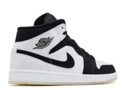 The Air Jordan 1 Mid SE ‘Diamond’ dresses the classic silhouette in a simple two-tone palette celebrating the 75th anniversary of the NBA. The mid-top carries an all-leather upper that combines a clean white base with contrasting black accents on the forefoot overlay, signature Swoosh, and mid-cut collar. The tongue tag displays classic Jumpman branding framed in a geometric shape that nods to the NBA’s diamond anniversary. A white rubber midsole features an encapsulated Air-sole unit in the heel and a milky white translucent rubber outsole underfoot.