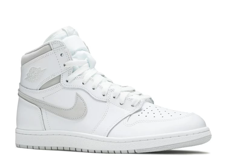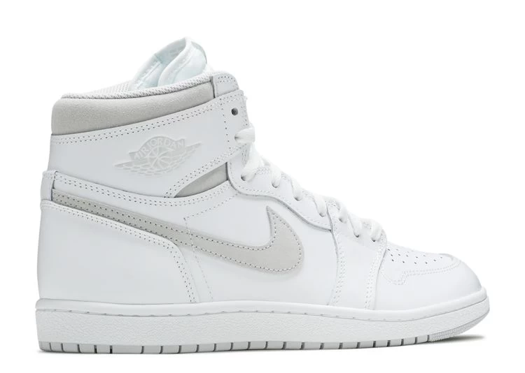 The Air Jordan 1 Retro High ‘85 OG ‘Neutral Grey’ resurrects the coveted original colorway for the first time ever. This retro release features the classic high-cut shape of Peter Moore’s 1985 design, rendered in pristine white leather with subtle grey suede on the collar and signature Swoosh. Nike Air branding lands on the woven tongue tag and sockliner, while the classic Wings logo is stamped on the lateral collar flap. The high-top is mounted on a durable rubber cupsole, enhanced with encapsulated Air sole cushioning in the heel.