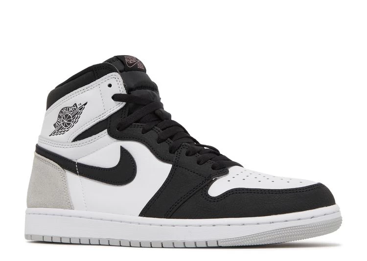 The Air Jordan 1 Retro High OG ‘Stage Haze’ features neutral tones on the foundational sneaker that started it all. The upper combines a white leather base with a grey suede heel overlay and a forefoot overlay in cracked black leather. Matching black accents settle on the signature Swoosh and a retro Wings logo stamped on the lateral ankle. Nike branding is outlined in Bleached Coral on the woven tongue tag, delivering a subtle flash of color. The high-top rests on a rubber cupsole that pairs white sidewalls with a grey rubber outsole.