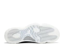 The Air Jordan 11 ‘Jubilee’, also known as the Air Jordan 11 '25th Anniversary', celebrates the classic silhouette’s quarter-century birthday with a monochrome black finish throughout the upper, constructed from a traditional blend of ballistic mesh and patent leather. In keeping with the shoe’s silver anniversary, a 3D metallic Jumpman and matching ‘23’ branding decorate the heel, while ‘Jordan’ is spelled out in stylized silver lettering on each of the sneaker’s eyelets. The mid-top rides on a classic white foam midsole, supported by a translucent rubber outsole.