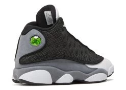 The Air Jordan 13 Retro ‘Black Flint’ dresses the legacy model in OG-inspired color blocking reminiscent of the ‘Flint’ colorway from 1998. Black mesh overlays dominate the upper, featuring a white leather toe box with synthetic grey suede along the midfoot and collar. A crimson Jumpman decorates the white leather tongue, while the 13’s holographic ‘cat eye’ graces the lateral ankle. Anchoring the sneaker is a panther paw outsole, fitted with white herringbone traction pods and an exposed carbon fiber shank plate.